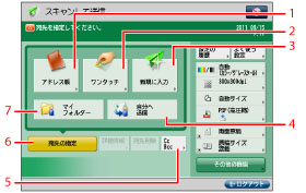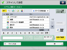 ファクスの宛先は、[ファクスファンクションの表示]の<「スキャンして送信」にファクスを表示>を「ON」に設定すると表示されます。(→ファクスファンクションを表示する)