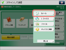 キーボード画面でEメールアドレスを入力するときに、入力した文字とローカルアドレス帳に登録されているEメールアドレスとで一致したものが、候補として黄色でマーキングされて表示されます。 表示された候補をそのまま入力するときは[OK]を押します。別のアドレスを入力するときは続けて宛先を入力します。 ▼を押して候補一覧を表示させてから、宛先を選択することもできます。 アクセス番号管理された宛先は候補として表示されません。 |