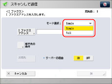 NTTコミュニケーションズのインターネットファクス中継サービスを利用するには、「Simple」を選択してください。これにより、読み込まれたデータがファクスへ転送されます。なお、このサービスを利用するには、NTTコミュニケーションズとの契約が必要です。詳しくはNTTコミュニケーションズにお問い合わせください。