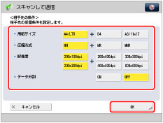 「OFF」にした状態で、送信データサイズが[送信データサイズ上限値]で設定した値を超えると、送信エラーになります。(→送信データサイズ上限値を設定する)