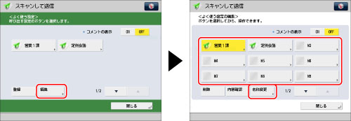 まだ宛先や設定が登録されていない設定ボタンにも名称とコメントは登録できます。