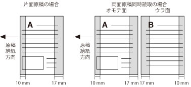 フィーダーにセットしたときに、読み込む面の図で示した範囲のみにカラー部分がある原稿