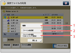 ファイルの追加、選択したファイルの削除またはファイル名の変更をします。