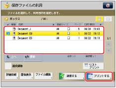 同じボックスに保存されている場合のみ、複数のファイルを選択できます。異なるボックスに保存されているファイルをプリントする場合は、あらかじめボックス間でファイルを移動する必要があります。(→ファイルを移動/複製する)