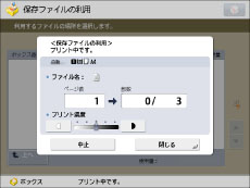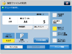 コンピューターやコピー機能の[ボックスに保管]から保存したファイルを保存時の設定どおりにプリントする場合は、プリント設定変更画面からプリントしないように注意してください。プリント設定変更画面からプリントすると、保存時の設定どおりにプリントされない場合があります。
