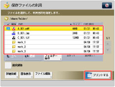 同一フォルダー内で同時に選択してプリントできるファイル数は6ファイルまでです。ただし、異なる形式のファイル(PDFとJPEGなど)を同時に選択することはできません。
