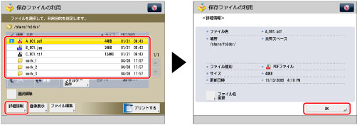 目的のファイルを選択→[詳細情報]→[OK]を押す