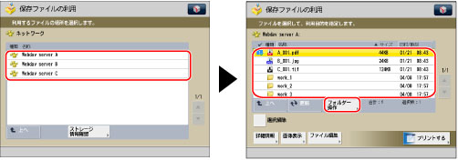 ストレージを選択→目的のフォルダーがある階層を選択→[フォルダー操作]を押す