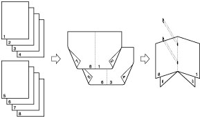 [折りのみ]を選択した場合、一度にサドル折りできる用紙の枚数は、最大5枚です。