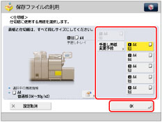 仕切紙に使用する用紙の給紙箇所を選択→[OK]→[閉じる]を押す