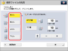 ファイルの画像を左、右、上、下に移動させて、プリントの左端、右端、上端、下端に指定幅のとじしろ(白地)を作ってプリントできます。プリントをとじるときに便利です。