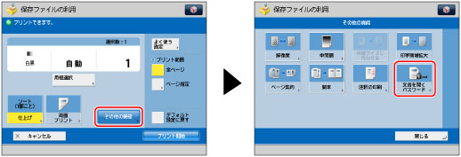 暗号化PDFファイルを開くには、[暗号化パスワード]→[パスワード]を押したあと、パスワードを入力します。