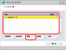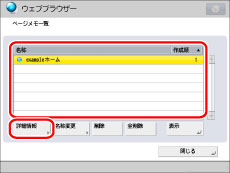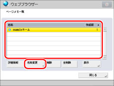 名称、URLを変更できます。URLを変更した場合も、保存される画面の内容は変わりません。現在表示している画面がページメモとして保存されます。