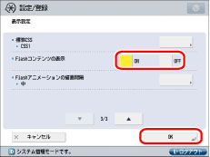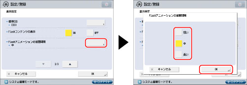 [Flashアニメーションの描画間隔]を「短い」に設定していると、プリントなどその他の動作が遅くなる場合があります。
