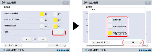 <標準CSSのみ>、<標準CSS+Style属性>、<標準CSS+Style属性+外部インポートCSS>のいずれかを選択できます。