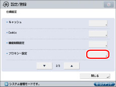 セキュリティー上、プロキシーを使用する必要のないアドレスを指定できます。本体側で設定したプロキシーを確認できます。