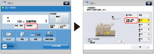 用紙の種類は必ず正しく設定してください。特に厚紙など、特別な種類の用紙にコピーするときは正しく設定されていないと画像不良が起こる可能性があり、定着器が汚れたり紙の巻きつきが発生したりして、担当サービスによる修理が必要になることもあります。
