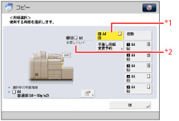 サイズボタン([S1]~[S5])を選択するには、あらかじめ用紙サイズをボタンに登録しておく必要があります。(→ユーザー設定サイズを登録/編集/削除する)
