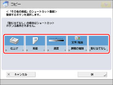 (→よく使う設定の登録/呼び出し/削除(よく使う設定))で登録したボタンを直接呼び出す設定もできます。設定したショートカットは基本画面上に表示されます。