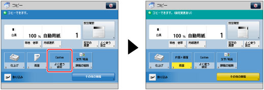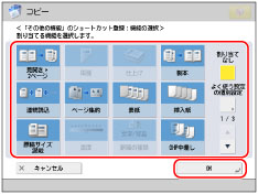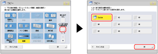 あらかじめ登録しておいたよく使う設定ボタンをショートカットに割り当てます。コピー基本画面から確認画面を表示することなく、直接設定を呼び出すことが可能になります。