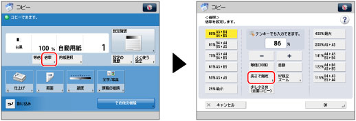 原稿サイズとコピーサイズのタテヨコの比率を選択