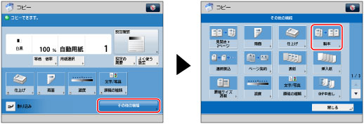 [クリープ(ずれ)補正]の[自動]を設定して重連コピーを行うと本製品と重連コピープリンターにそれぞれ設定しているクリープ(ずれ)補正量が適用されます。本製品と重連コピープリンターで同じクリープ(ずれ)補正量を登録してください。