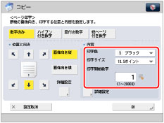 印字位置を[部数印字]、[スタンプ]、[日付印字]と同じ位置に設定しているときは、
