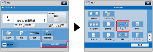 シャープネスを調整することで、文字や線の輪郭を際立たせて鮮明にコピーできます。反対に印刷写真など、網点原稿の網点の輪郭をぼかして、画像をなめらかにしてコピーすることもできます。