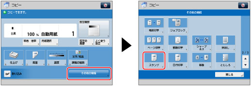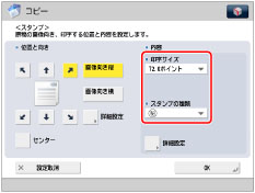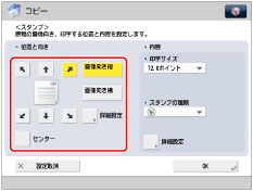 [ページ印字/スタンプの文字列登録]に登録されている文字列から選ぶこともできます。(→ページ印字/スタンプの文字列を登録/編集/削除する)