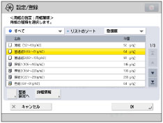 セットした用紙の用紙種類が詳細設定画面のリストにない場合は、その用紙種類をリストに登録できます。用紙種類の登録については、「用紙種類の管理設定をする」を参照してください。