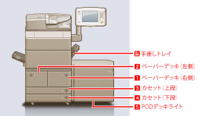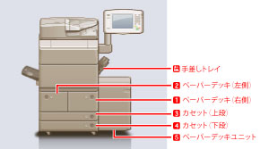 それぞれの給紙箇所で使用できる用紙については、「使用できる用紙について」を参照してください。