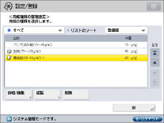 リストのソートドロップダウンリストで、登録順、名称順、坪量順にリストの並べ替えができます。
