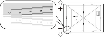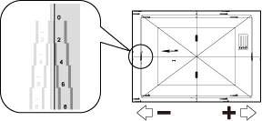 指標の中央のラインが用紙の縁よりも外側にある場合(指標の中央のラインが印刷されなかった場合)に押します。入力された画素数に応じて、画像が搬送方向に対して後退します。