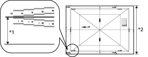 ![]() *1 12.5 mm *2 305.1 mm以上 上記のテストページの場合、「A1」の指標の中央のラインが用紙の縁から12.5 mm内側に引いた線に一致しているので、調整は不要です。 調整後に一度画面を閉じ再び開くと、画面上の数値は「0」に戻っていますが、入力した調整値は保持されています。調整を繰り返す場合は、新たに出力したテストページ上で指標を確認し、その数値を入力してください。