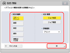 [コピー/プリント]、[送信]、[受信]を選択した場合は、詳細種類を設定できます。