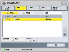デフォルト画面の変更(状況確認/中止)を[送信]、[ジョブ状況]、[送信]に設定している場合