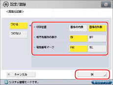 リモートFAX送信キットでファクス機能をお使いの場合、ファクス送信時の発信元記録の設定は、リモートファクスサーバー機の設定に従います。