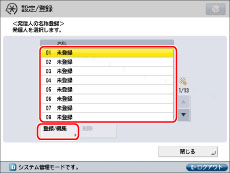発信人の名称を登録する番号(項目)を選択→[登録/編集]を押す