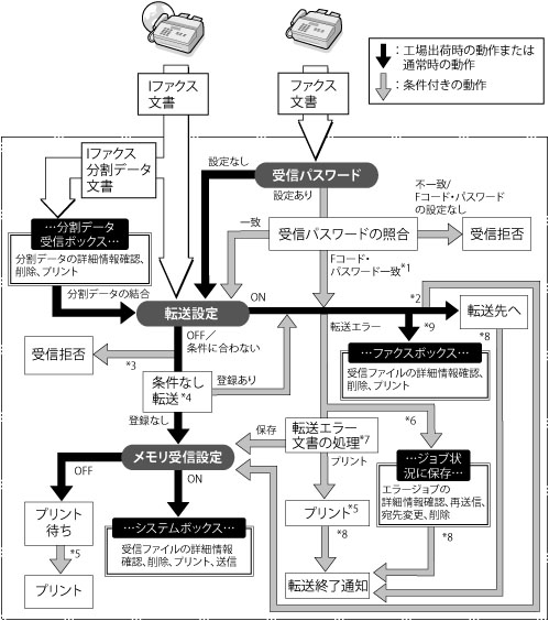 *1 Fコード・パスワードが転送設定の条件に一致すれば、受信パスワードの設定にかかわらず転送します。