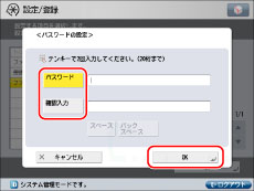[パスワード]と[確認入力]を入力→[OK]→[OK]を押す