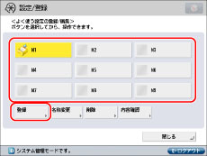 設定内容を上書きするボタン([M1]~[M9])を選択→[登録]を押す