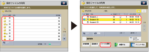 ボックスで[ファイル編集]の[複数ファイルの結合]または[ページ挿入]を行ったファイルは、ホールドキューに移動したり複製したりすることはできません。