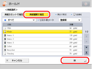 ドロップダウンリストで、表示する用紙種類を選択できます。
