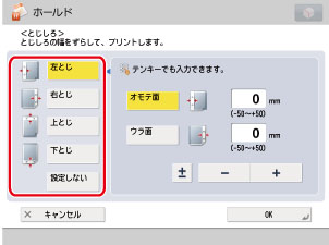 0以外のとじしろ幅を入力したときに[±]を押すと、+と-を入替えることができます。