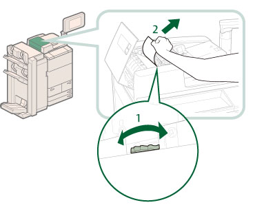 原稿を取り除きにくい場合は、フィーダーを閉じて、フィーダーカバー、中カバーを開いたあと、手順4を行ってください。