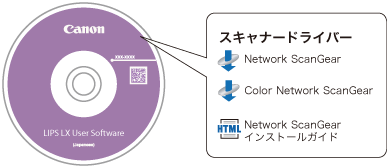スキャナードライバーは、プリンタードライバーと同様にUser Software CD-ROMに収録されています。