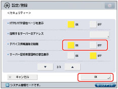 <デバイス情報通知の制限>の[ON]を選択→[OK]を押す