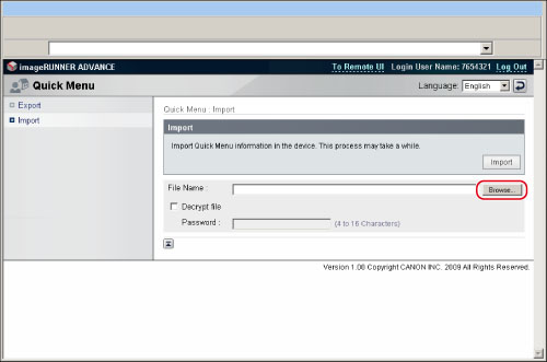 Do not turn the main power of the machine OFF while importing a Personal button/Shared button file, as doing so may cause the machine to malfunction.