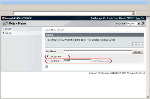 You can use the imported files of the Personal button/Shared button among the same models (imageRUNNER ADVANCE 8205/8295/8285). However, you may not be able to use some imported buttons depending on the difference of the optional product attached and the surrounding environment.