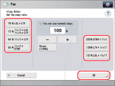To return the ratio to 100%, press [Direct (100%)].